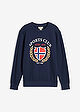 Raikkaan värinen collegepusero.
