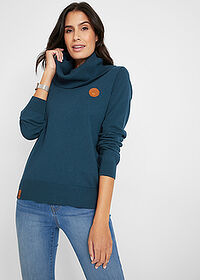 Sileää puuvillaneulosta, tummempi kuin kuvissa. Savupiippukaulus on aika runsas, mutta antaa vähän särmää muuten peruspaidalle.