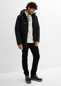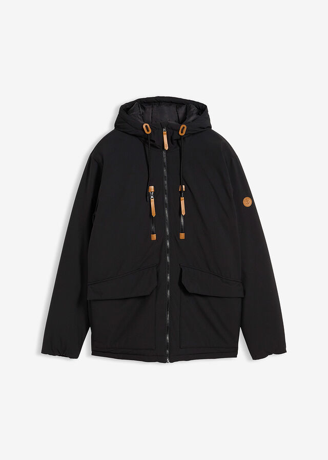 AsiakaspalauteHupullinen talvitakki tekonahkaisilla yksityiskohdilla