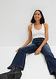 AsiakaspalauteKorkeavyötäröiset farkut levenevillä lahkeilla, Pituus normaali