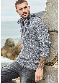 AsiakaspalautePaksuneuloksinen hupullinen neulepusero puuvillasekoitteesta