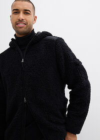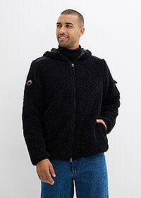 AsiakaspalautePörröinen fleecetakki kangassomisteilla ja hupulla