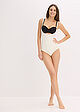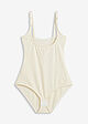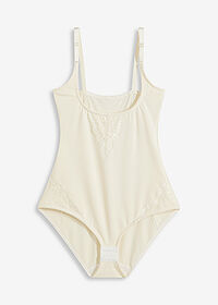 Melko jämäkkä materiaali, niinkuin lukeekin. Malli jotenkin lyhyt, haaruksista oli kireä käytössä. Normaali pituinen vartalo ja pituus itsellä cm. Usein bonprixin vaatteet reilua mitoitusta mutta tämä oli siinä ja siinä että mahtui päälle. Eli tämän tuotteet kohdalla valitsisin isomman mielummin kuin pienemmän. Tämä antaa kyllä tukea hyvin, ehkä liikaakin 😂